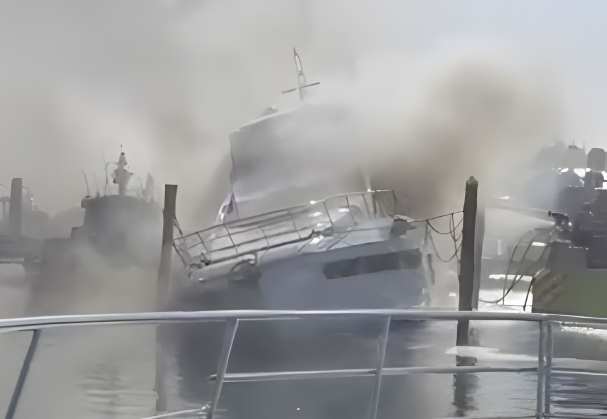 Se incendia un yate de lujo en un muelle de Miami Beach
